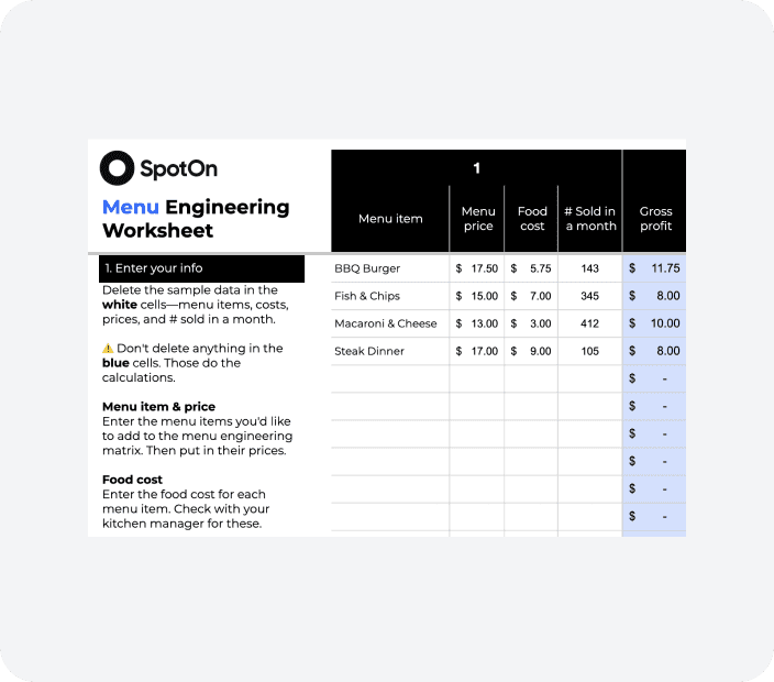 Menu engineering worksheet